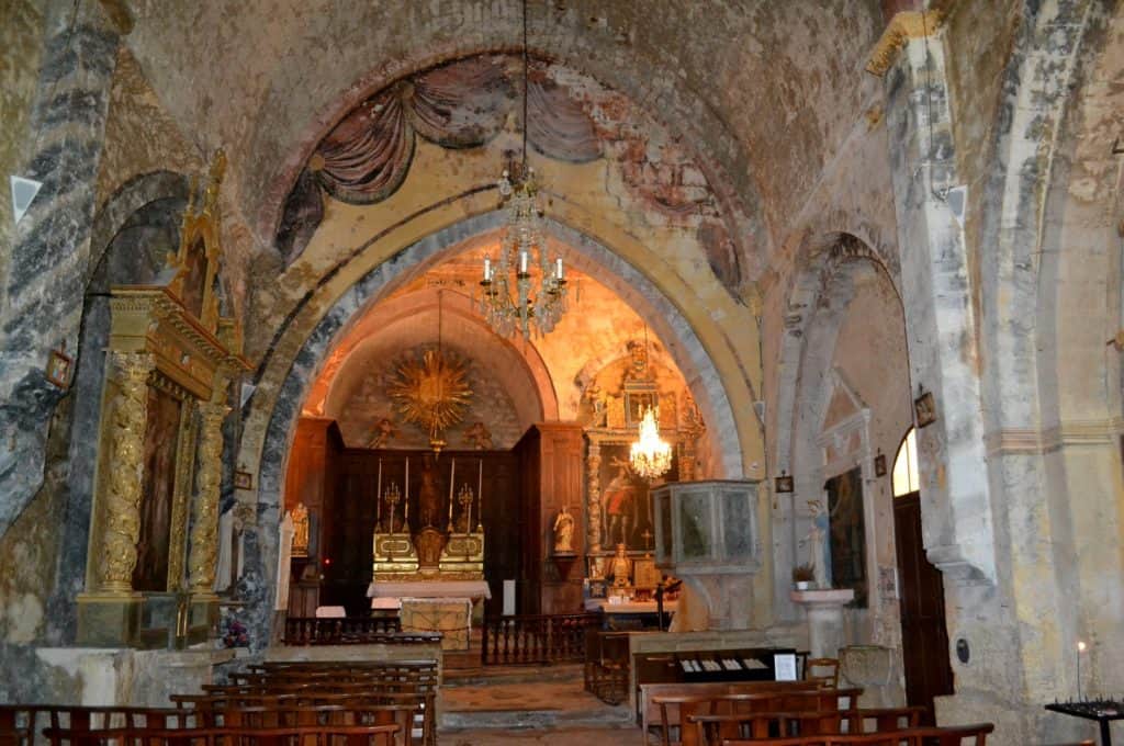 I walked around the tiny village, cobbled stoned and cute enough. Small streets, small buildings, short doorways, windows. I have come to the land of midgets. Inside the church, I feel all alone, like I am trespassing. The church is also fitting the village style, simple, very old, could use better upkeep. It is a pretty enough village but I feel claustrophobic. I prefer my own village, Ollioules, which is more like a small town so you have some level of privacy.