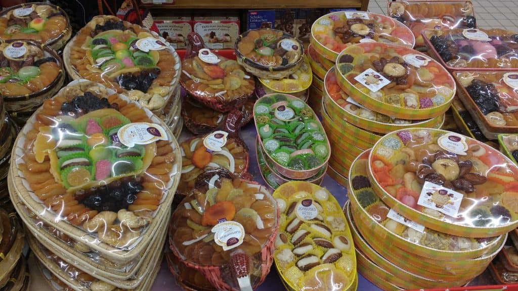 Ready to go fois gras! Dried fruits, one of the desserts Mountains of chocolates North African influence on Provence